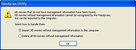 5. HD (high definition) È­ÁúÀÇ ºñµð¿À¸¦ »ç¿ëÀÚ ÄÄÇ»ÅÍ¿¡ ³ÖÀ» ¶§, [°ü¸® Á¤º¸°¡ ¾ø´Â HD µ¿¿µ»óÀ» ÄÄÇ»ÅÍ·Î °¡Á®¿É´Ï´Ù.]¸¦ ¼±ÅÃÇϰí [OK]À» Ŭ¸¯ÇϽʽÿÀ.