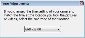单击主窗口中的 [校正] 并选择 [时间调整] 显示时间调整窗口。 从时间调整窗口中显示的下拉列表中选择想要的时差设置。