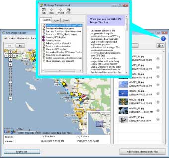 软件附带的帮助文件(GPS Image Tracker手册) 提供 GPS Image Tracker 基本操作的细节。 若要阅读 “GPS Image Tracker手册”,单击软件主菜单中的